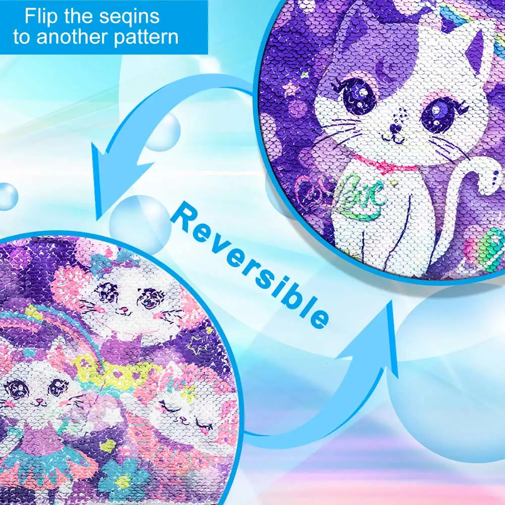 1. Girls Rolling Backapck : rolling backpack + lunch box+ pencil case, magic reversible sequin material, smooth zipper, widened and thickened shoulder straps make it feel nice and comfortable.