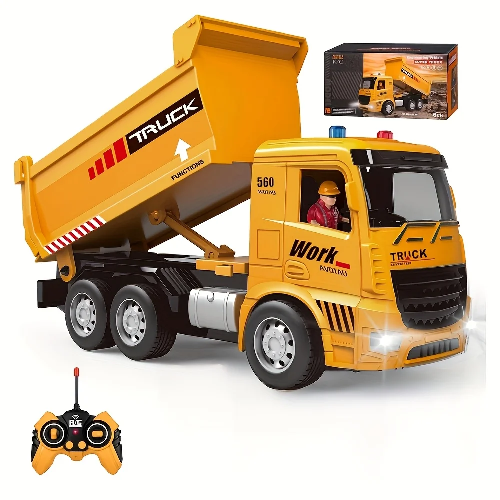 Channels Remote Control Dump Truck with Rechargable, Construction-Car-Vehicle Toddlers-for 6 Year,A Gift for Children’s