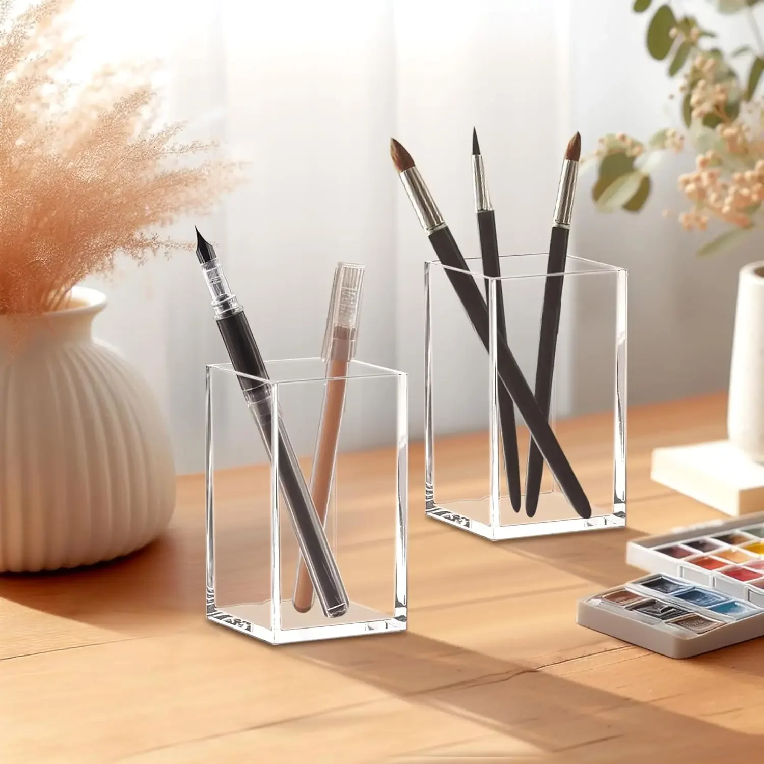 Not only can this acrylic holder be used for storing makeup brushes, nail polishes, and lipsticks, but it is also suitable for organizing various office supplies like pens, pencils, highlighters, and more. Additionally, it can function as a water plant container or flower vase.