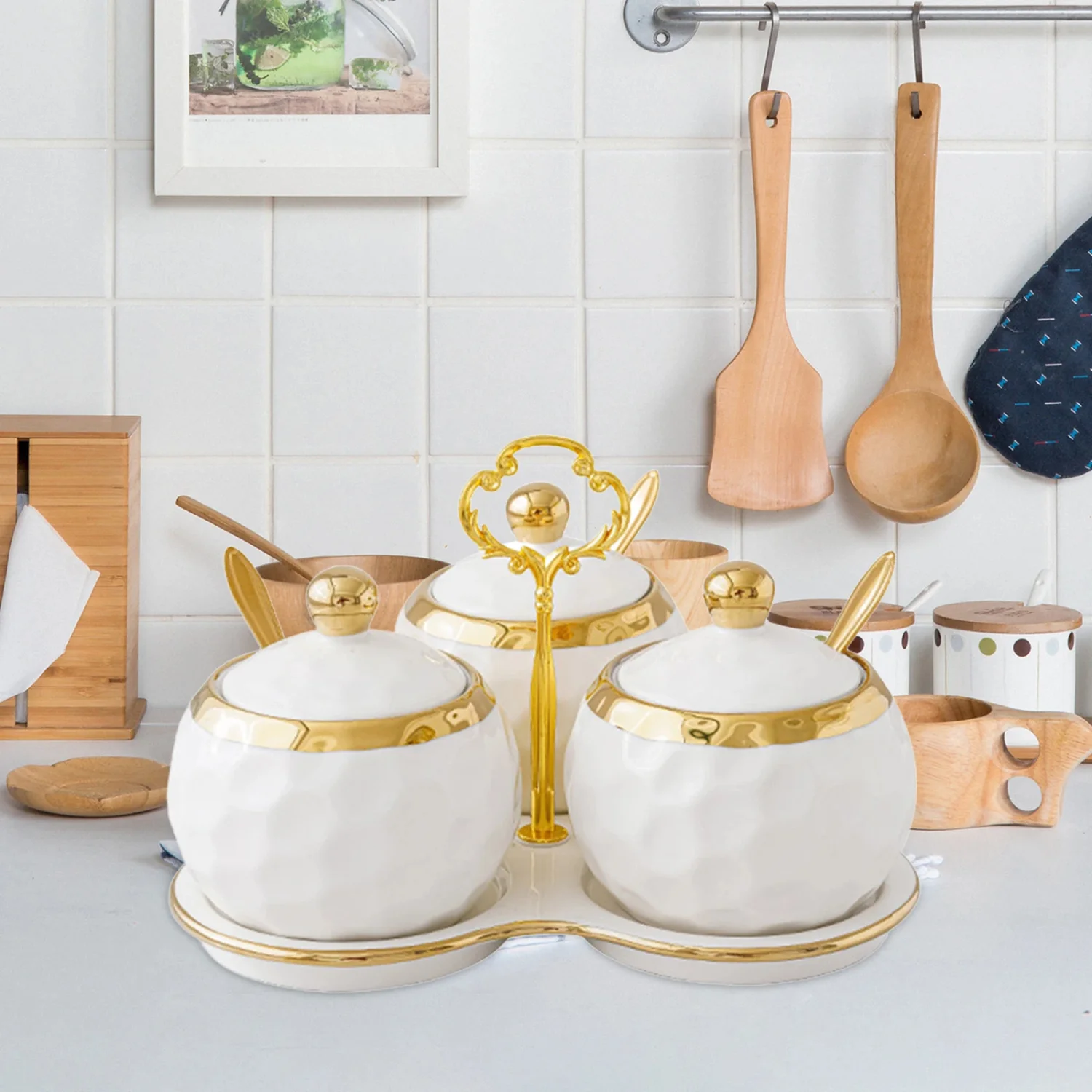 Ceramic Spice Jars Condiment Jars Restaurants Sugar Kitchen Counter White Ceramics Spice Jars Set Container Canisters