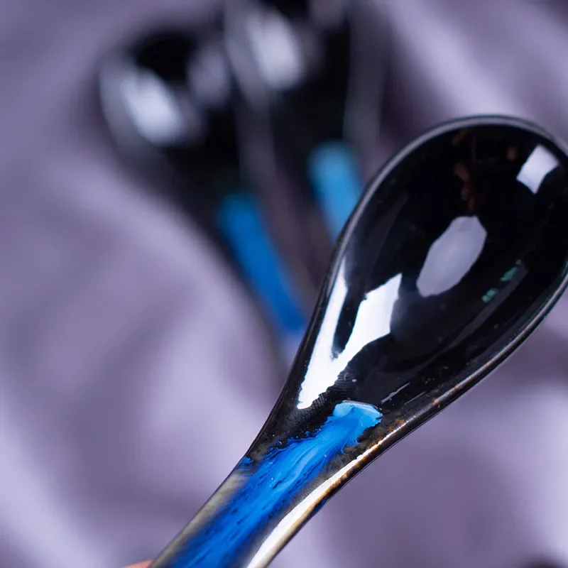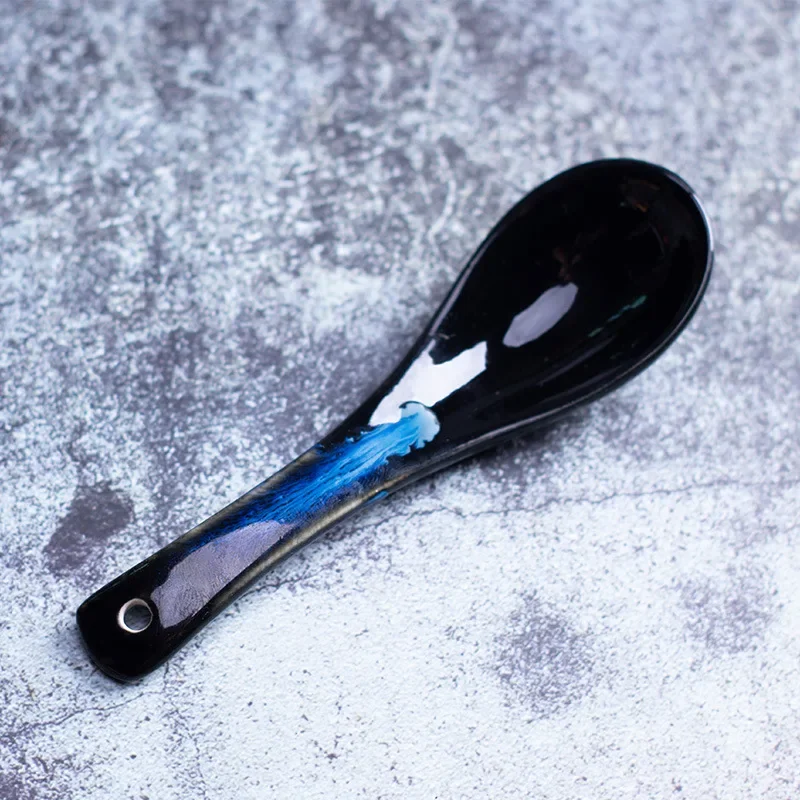Long Handle Ceramic Rice Cooker Soup Spoon Hotel Style Individual Mini Spoon Ladle with Handle Home Use Kitchen Utensil