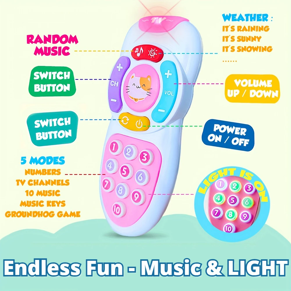 Introducing our adorable and educational Baby TV Remote Control Toy, designed to stimulate your child’s curiosity and learning through interactive play. This toy remote control features a cute cat face and is made from high-quality ABS environmental material, ensuring it’s safe and durable for your baby.