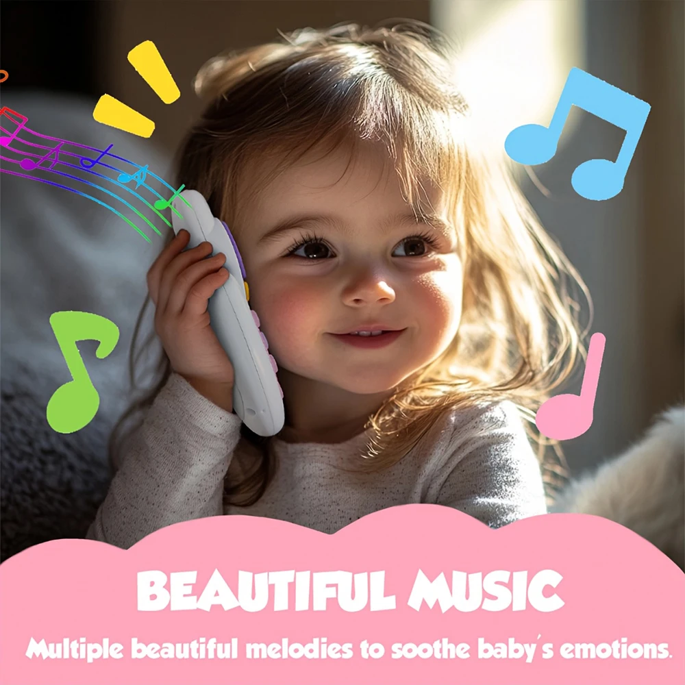 Montessori Baby Remote Control & Phone Toy, Soft Lights & Music for Early Sound & Visual Development, Newborn Birthday Gift