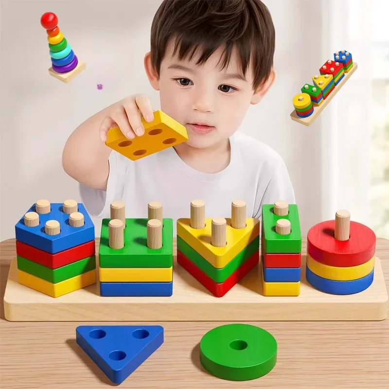 This Montessori Geometric Column Building Blocks is an educational toy that enhances children’s cognitive skills through play.