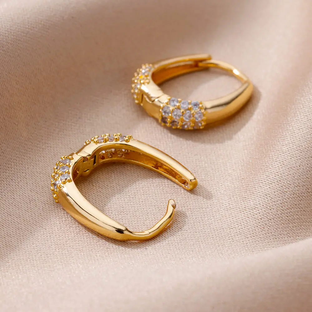 Oval Earrings for Women Waterproof Zircon Stainless Steel Earrings Trend New in Elegant Piercing Ear Jewelry