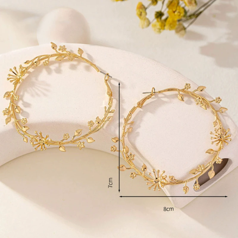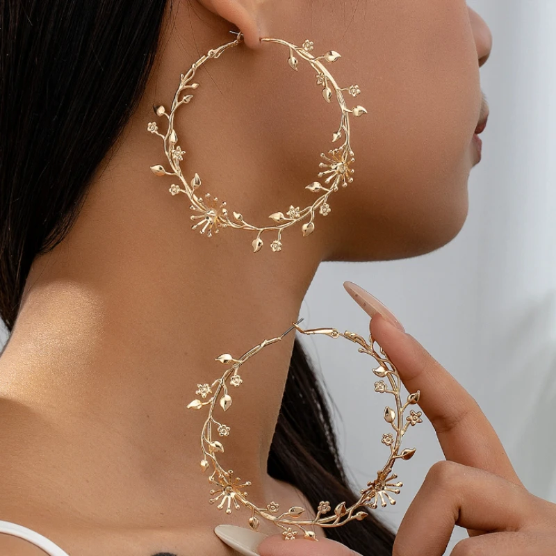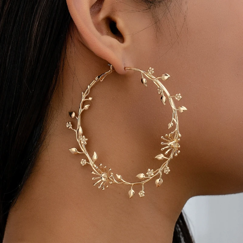 Exaggerated Hoop Earrings, featuring a captivating vintage leaf and flower design that exudes timeless elegance. These earrings are not just a fashion statement but a nod to the classic vintage trend that’s as relevant today as it was in the past.