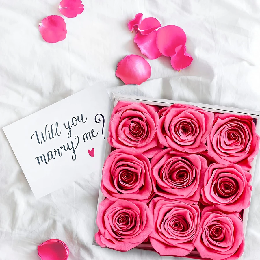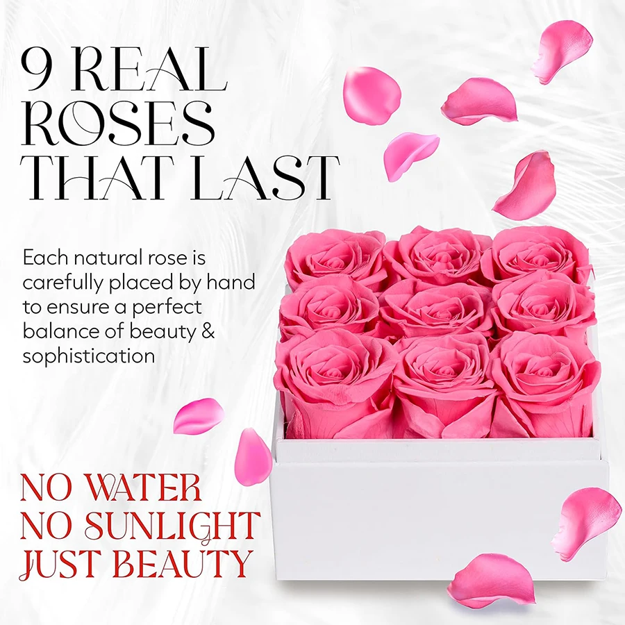 Rose in Acrylic Cover Square Box Handmade Preserved Roses Eternal Rose Perfect for Mothers Day Anniversary Birthday Gifts