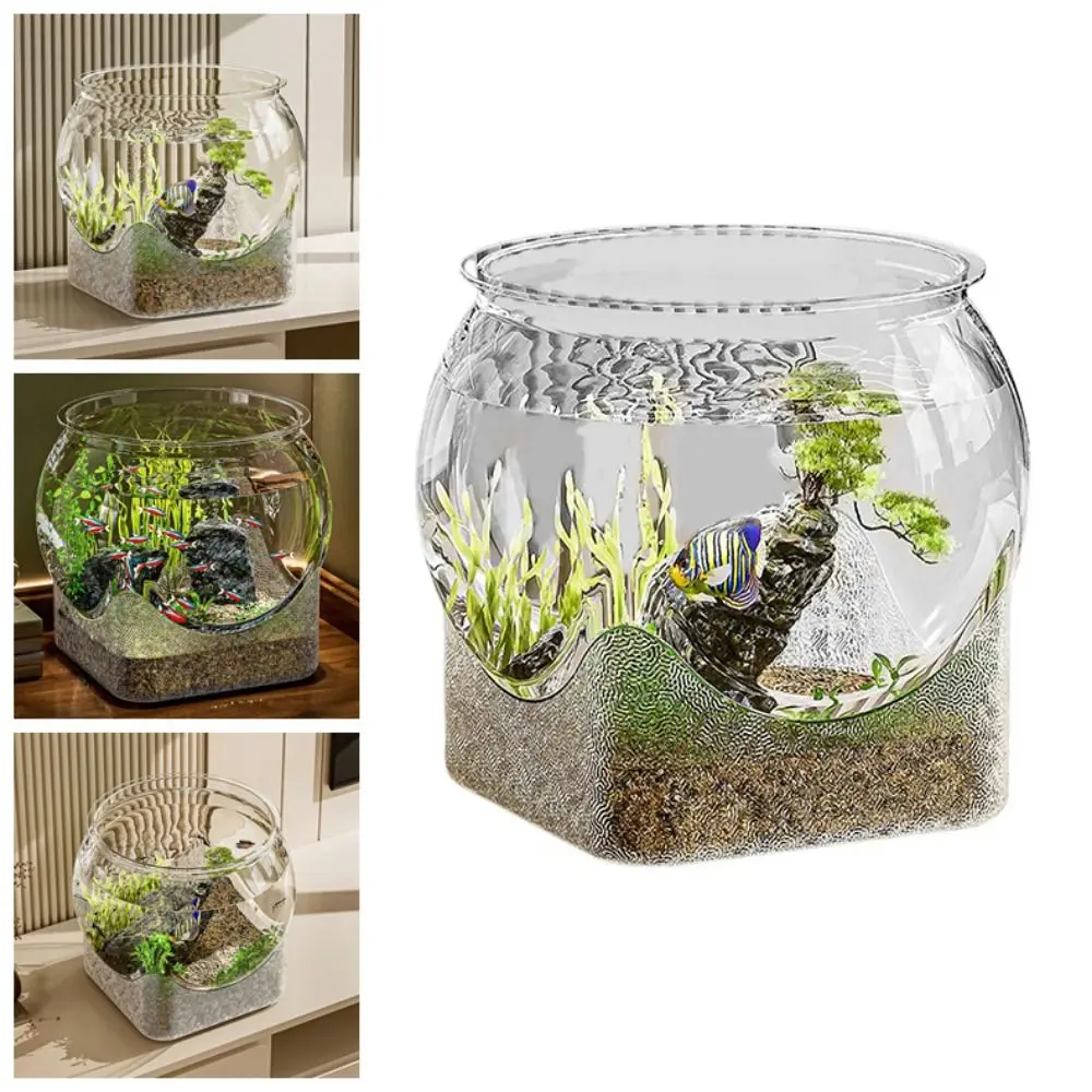 Ultra Clear Round Fish Bowl Plastic Removable Desktop Fish Tank 360-Degree View Desktop Small Aquarium Tabletop Ornament